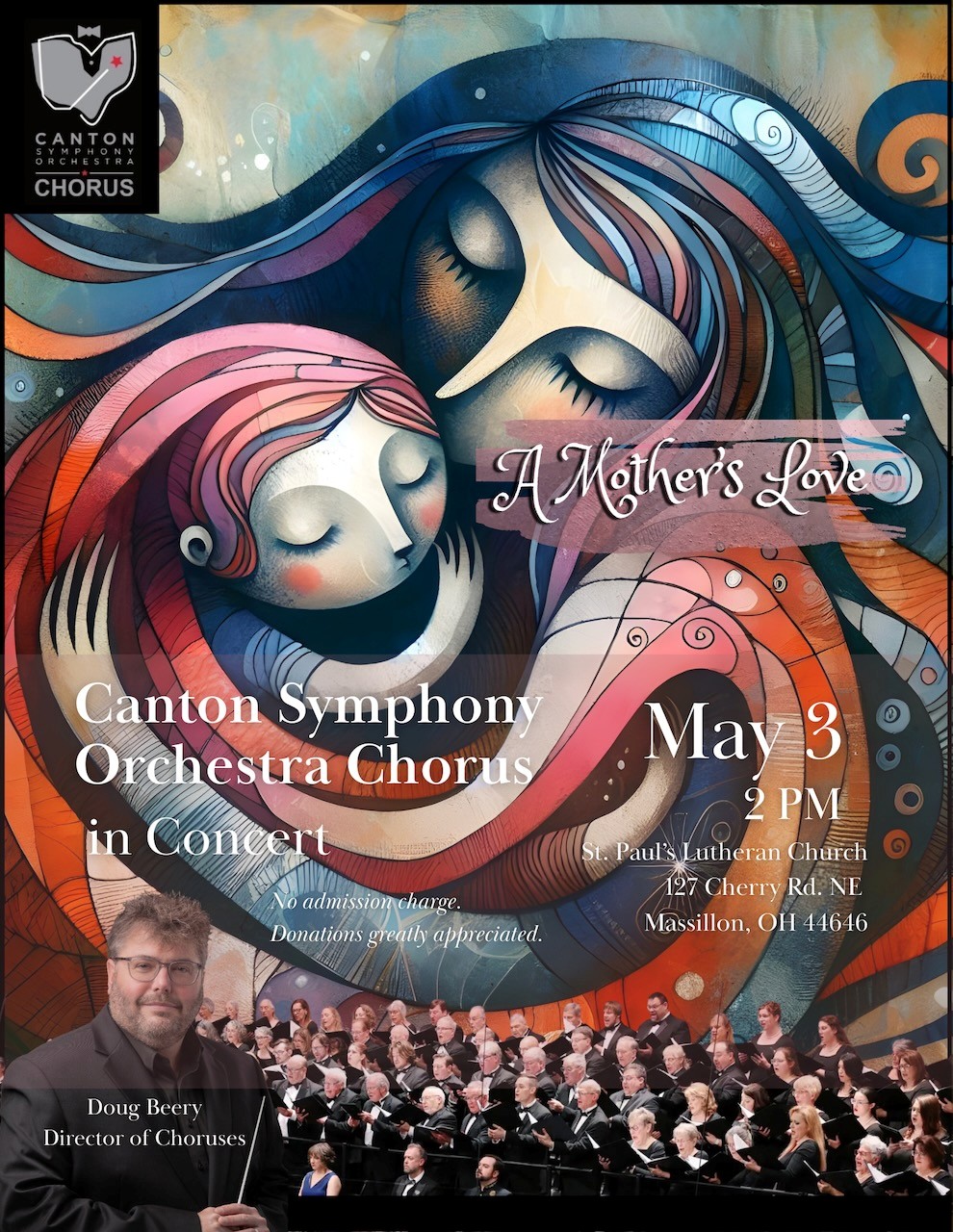 The Canton Symphony Orchestra Chorus will present several movements from Brahms’ A German Requiem, from the Masterworks Concert on March 28. Brahms’ Requiem was in part inspired by his deep devotion to his mother, who had died not long before this was written. The program will also have several other pieces inspired by mothers in honor of Mother’s Day coming on May 10.